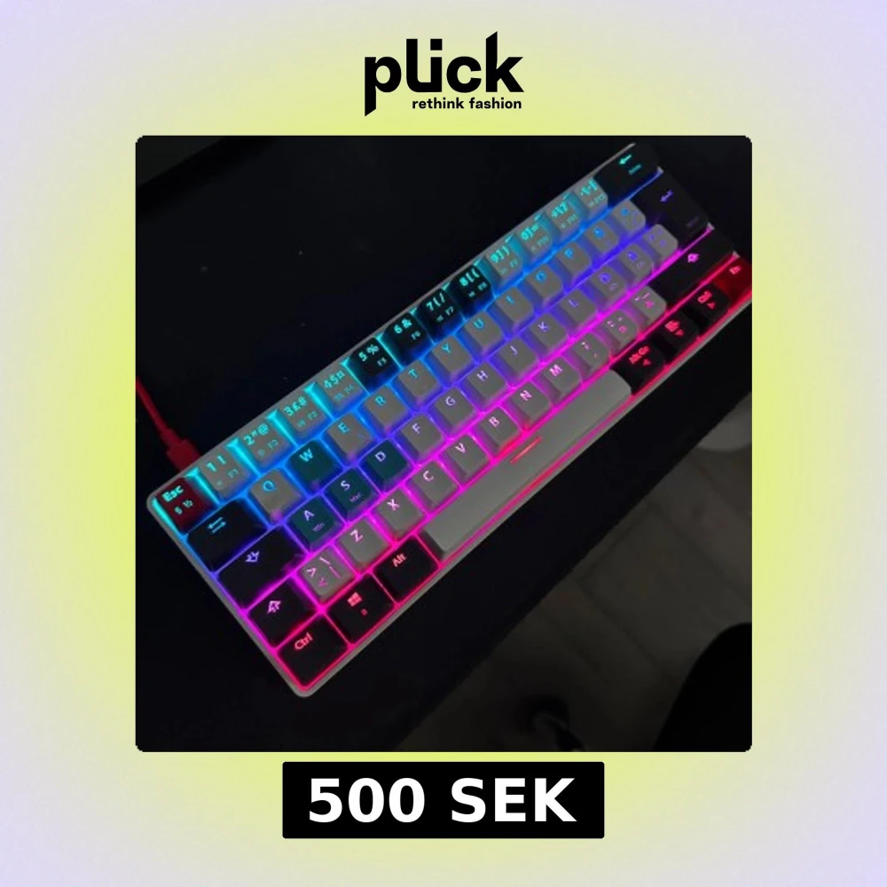 Kompakt mekaniskt tangentbord med RGB-belysning och nordisk layout. Perfekt för gaming och skrivbord med begränsat utrymme. Tangenterna är i gott skick, vissa har utbytta färger. USB-anslutning. Modell: C450 Mini Keyboard Pro RGB.