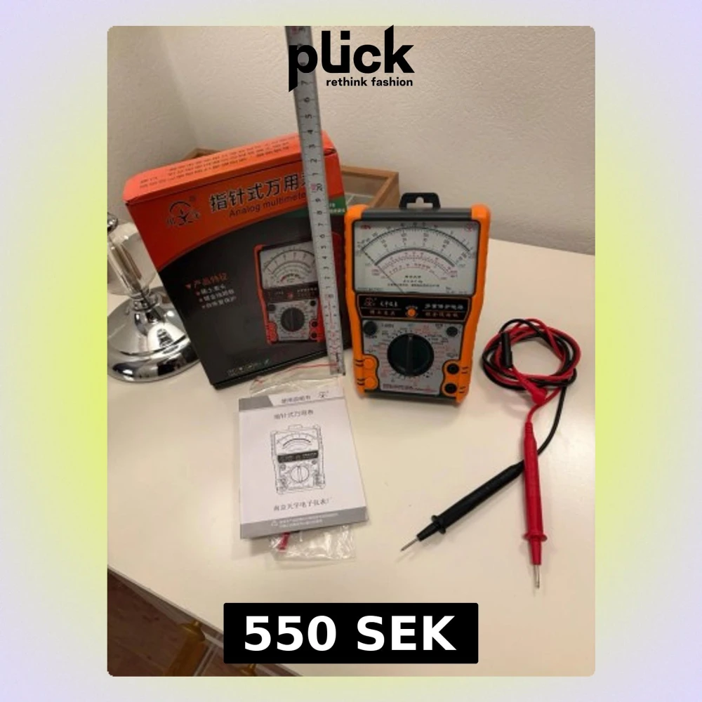Analog multimeter T-88N i nyskick, komplett med originalkartong, manual och mätprober. Mäter spänning, ström och resistans med tydlig analog skala. Robust orange hölje, inga synliga defekter eller slitage. Perfekt för elektronikentusiasten eller hobbyprojekt.