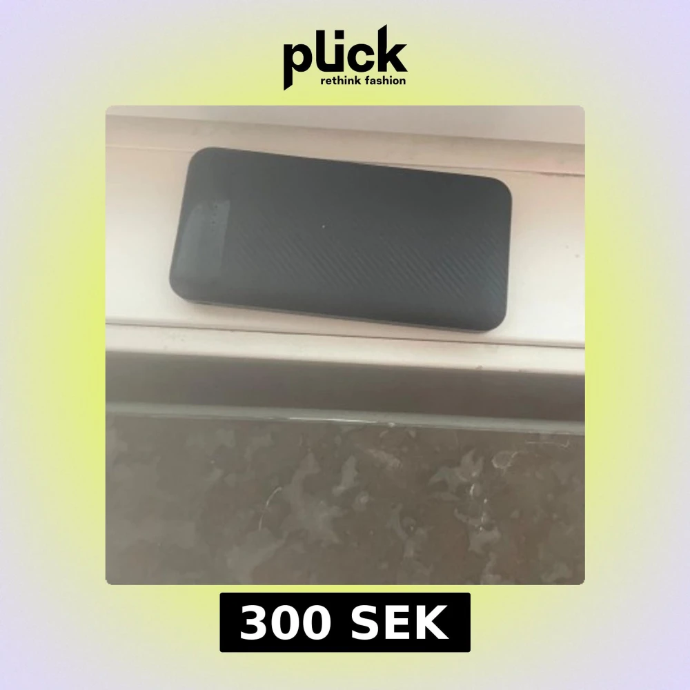 Snygg och slimmad svart powerbank i bra skick, perfekt för att ladda mobilen eller surfplattan på språng. Två medföljande USB-C kablar ingår. Inga synliga repor eller skador. Laddar snabbt och är enkel att ta med sig överallt.