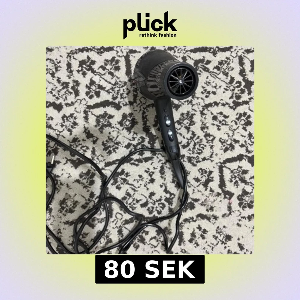 Kraftfull hårfön med 1800W effekt, svart design och ergonomiskt handtag. Utrustad med två hastighetsinställningar och lång sladd för enkel användning. Fint skick, inga synliga defekter eller slitage. Perfekt för snabb och effektiv hårtorkning hemma.