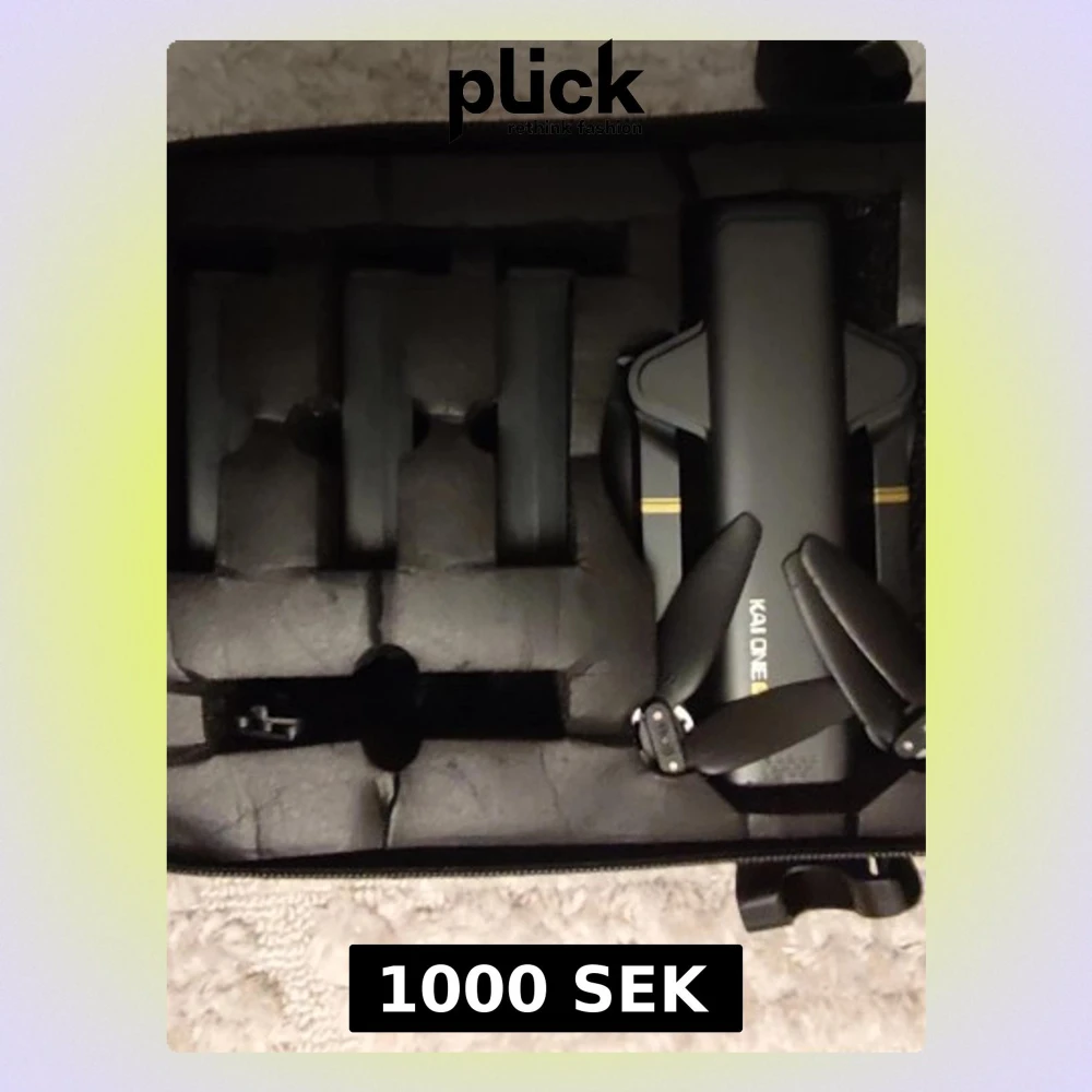 Säljer en svart Kai One Pro drönare i hopfällbar design. Drönaren kommer i en snygg och tålig svart väska med skumgummiinlägg för extra skydd. Perfekt för dig som vill filma eller fota från luften och enkelt ta med dig drönaren överallt. Behöver köpas nya batterier annars funkar den bra.