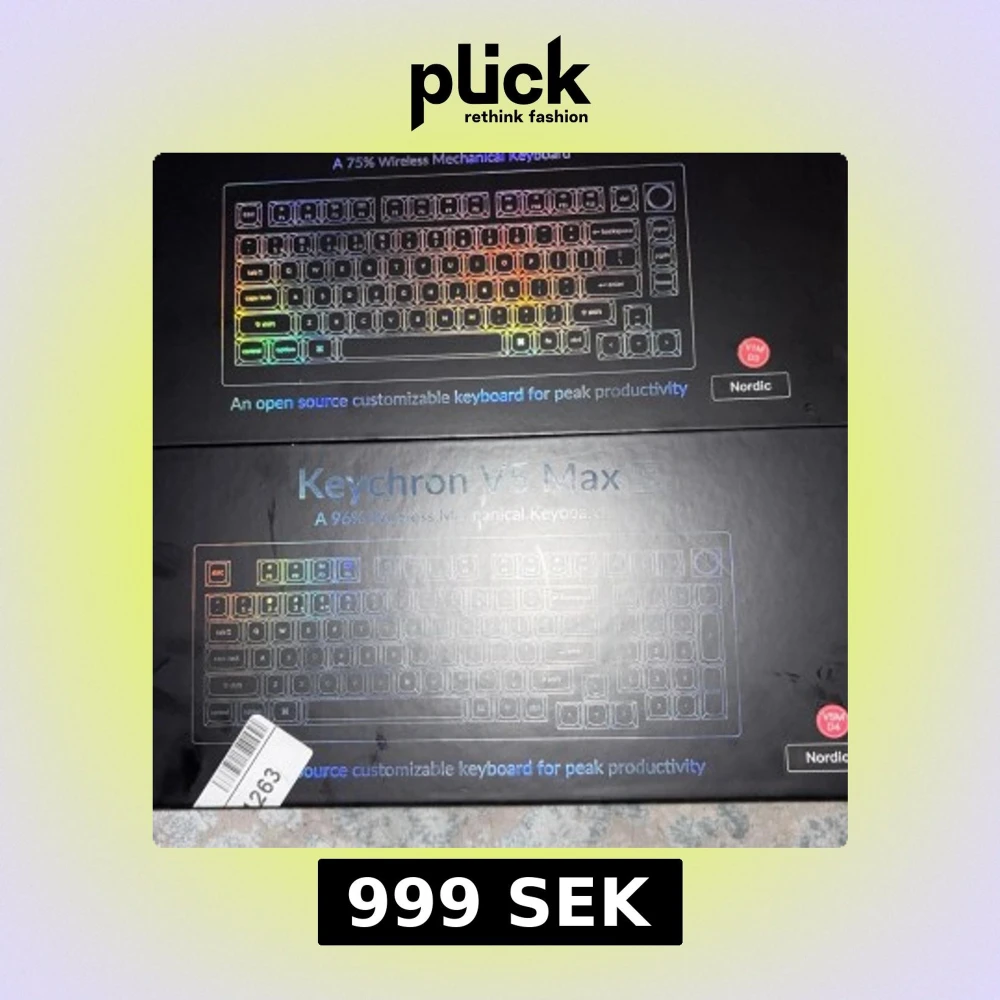 Säljer två trådlösa mekaniska tangentbord: Keychron V1 Max (75%) och V5 Max (96%). Båda är open source, anpassningsbara och har nordisk layout. Förpackningarna ser nya ut och inga synliga skador finns. Perfekt för produktivitet och gaming.