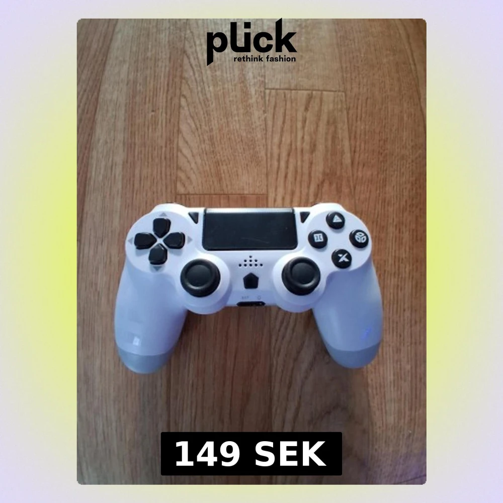 Trådlös spelkontroll från DYONDER i vitt, kompatibel med PlayStation. Inkluderar laddningskabel och har inbyggt batteri på 1000 mAh. Kontrollen är i gott skick med minimalt synligt slitage. Perfekt för gaming med bekväma knappar och touchpad.