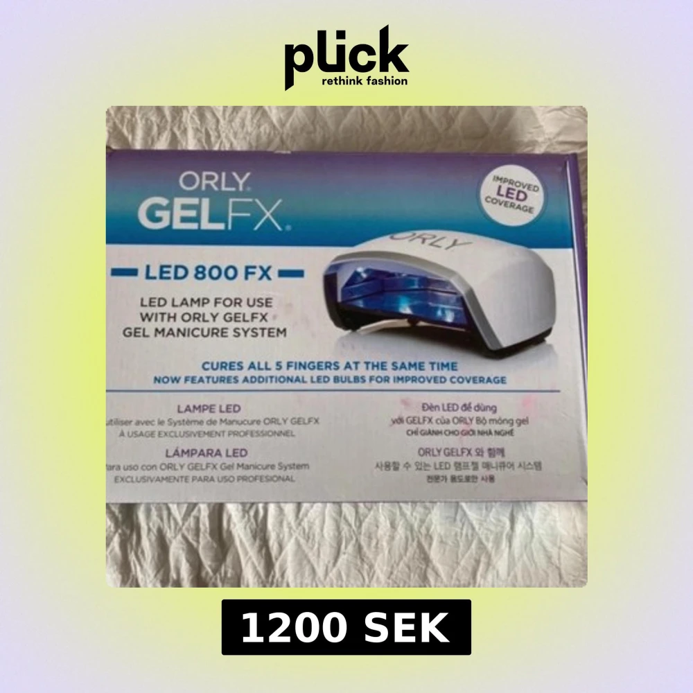 Professionell LED-lampa för gelmanikyr med Orly GELFX-systemet. Härdar alla fem fingrar samtidigt och har förbättrad LED-täckning. Inkluderar strömadapter. Produkten ser ut att vara i gott skick, perfekt för salong eller hemmabruk.