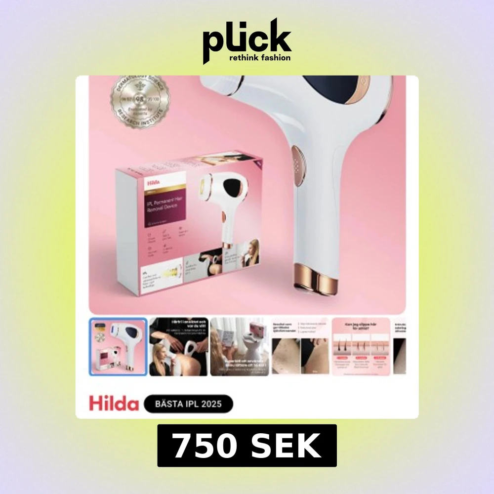 Effektiv IPL-hårborttagningsenhet för permanent hårborttagning hemma. Enkel att använda på kropp och ansikte, med synliga resultat efter några veckor. Modern design i vitt och roséguld. Levereras med originalförpackning. Perfekt skick, inga synliga defekter. Perfekt för att börja inför sommaren