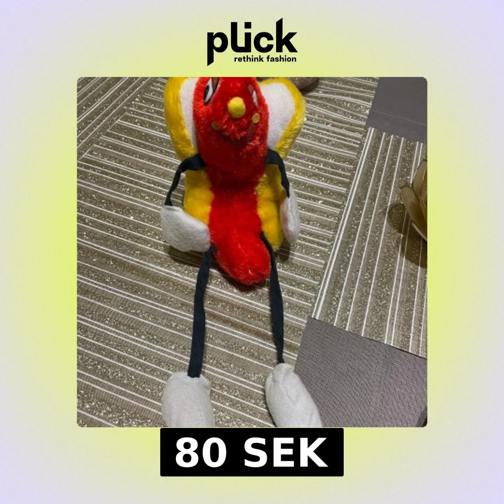 Unik mjukisdjur i form av en färgglad f, Tillverkad av mjukt tyg i rött, gult och vitt med svarta ben. CE-märkt och i gott skick, inga synliga defekter eller slitage. Perfekt som present eller dekoration.
