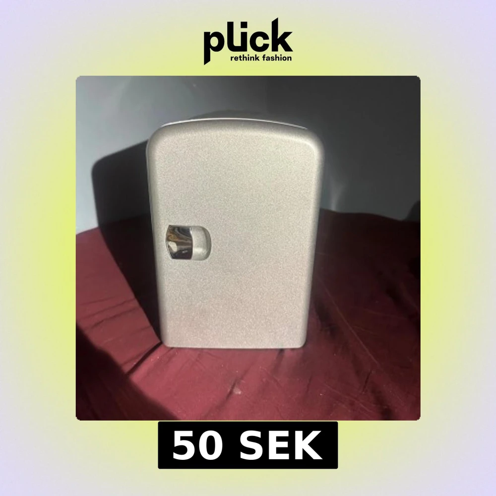 Smidigt mini kylskåp i silverfärg, perfekt för kontor, sovrum eller resor. Kompakt design med enkel dörröppning och ventilerad baksida. Invändigt rent och utan synliga skador. Fungerar som kyl och håller drycker eller snacks kalla. Mindre tecken på normalt bruk.