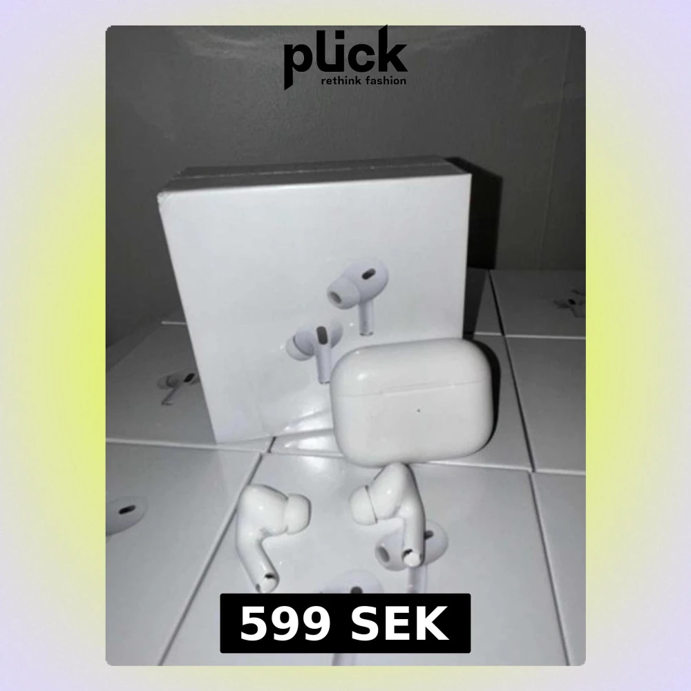 Apple AirPods Pro med laddningsetui, trådlösa hörlurar med aktiv brusreducering och transparensläge. Flera enheter i originalförpackning, hörlurarna och etuiet ser ut att vara i gott skick utan synligt slitage. Perfekt för musik, samtal och träning.