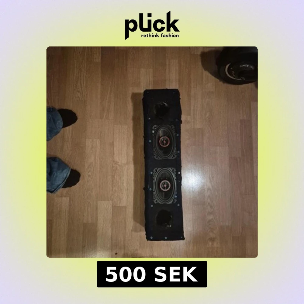 Snygg högtalarlåda med två inbyggda bilhögtalare, perfekt för ljuduppgradering i bilen. Svart tygklädd låda med synliga monteringsskruvar. Viss slitage och två tomma hål upptill och nedtill, men högtalarna ser hela ut. Säljs i befintligt skick. 250w rms styck cerwin vega passar i hatthylla