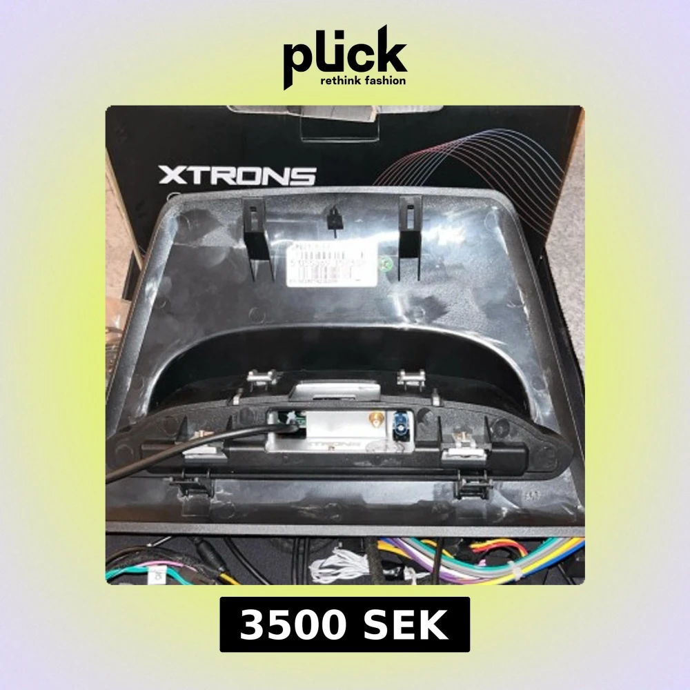 XTRONS QPBS13X3MK Android bilstereo med stor pekskärm, komplett med kablar och tillbehör. Skärmen och tillbehören ser ut att vara i mycket gott skick, inga synliga repor eller skador. Perfekt för uppgradering av bilens infotainmentsystem.