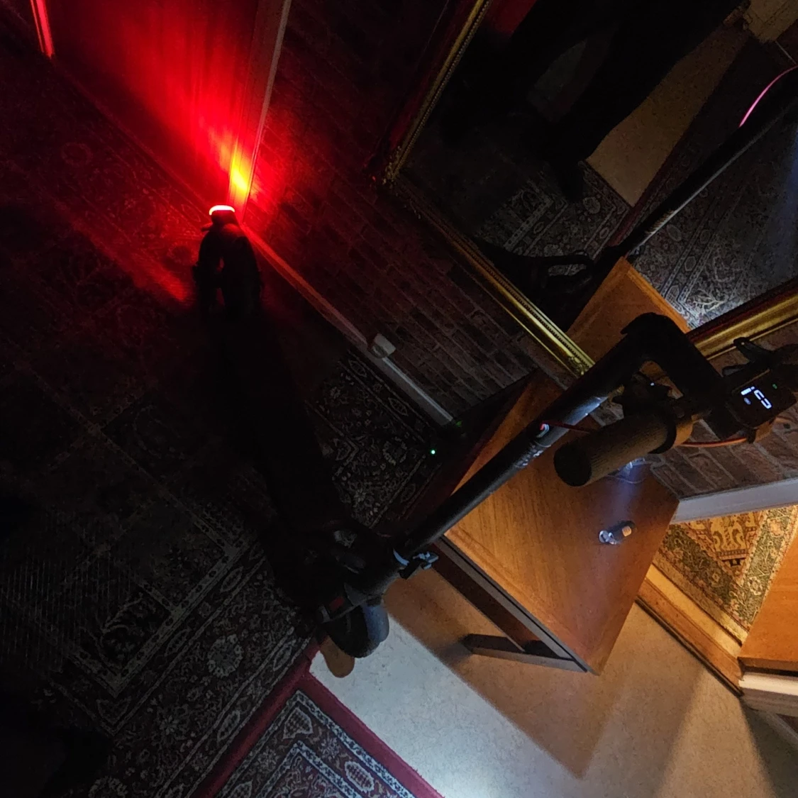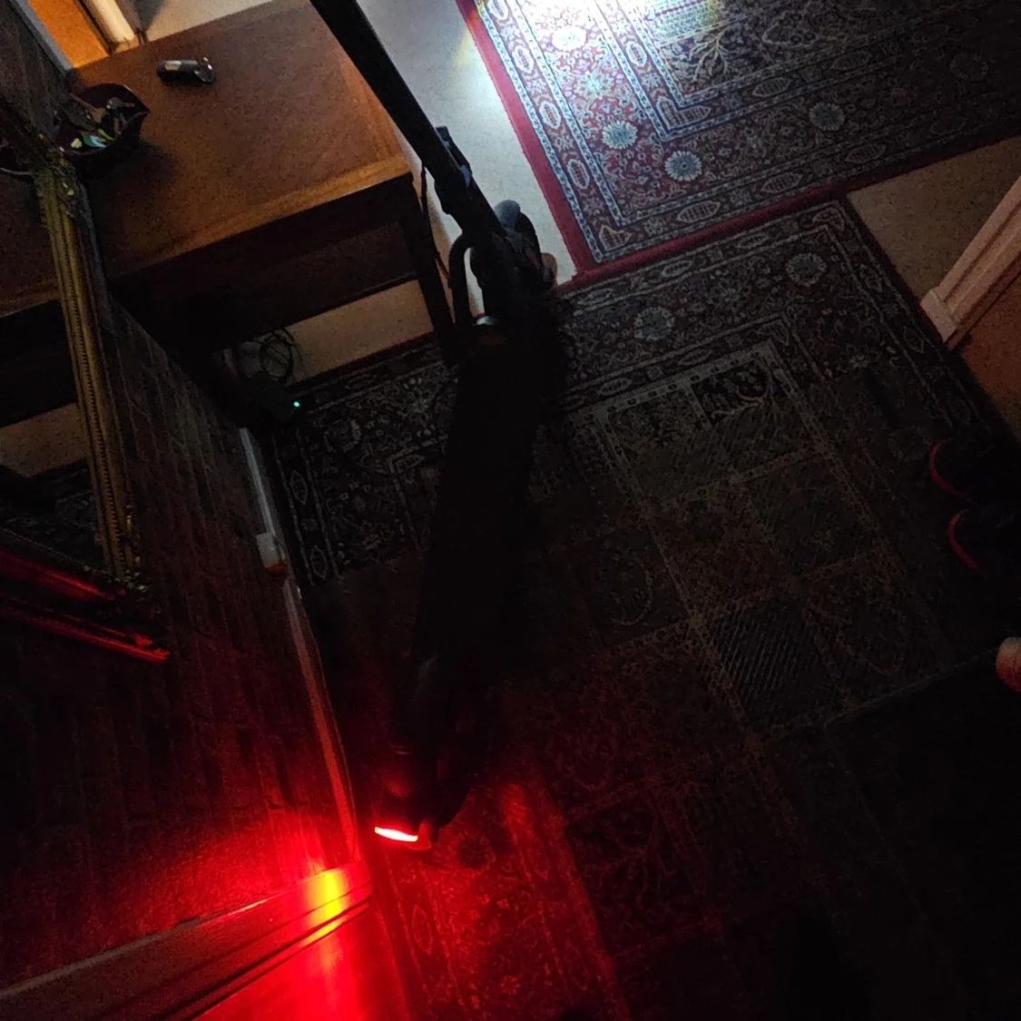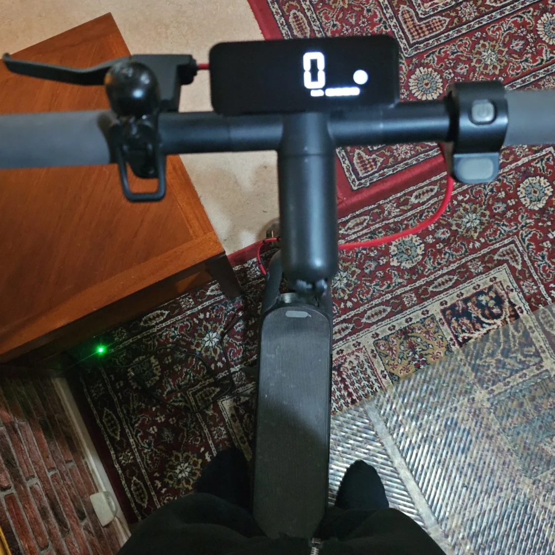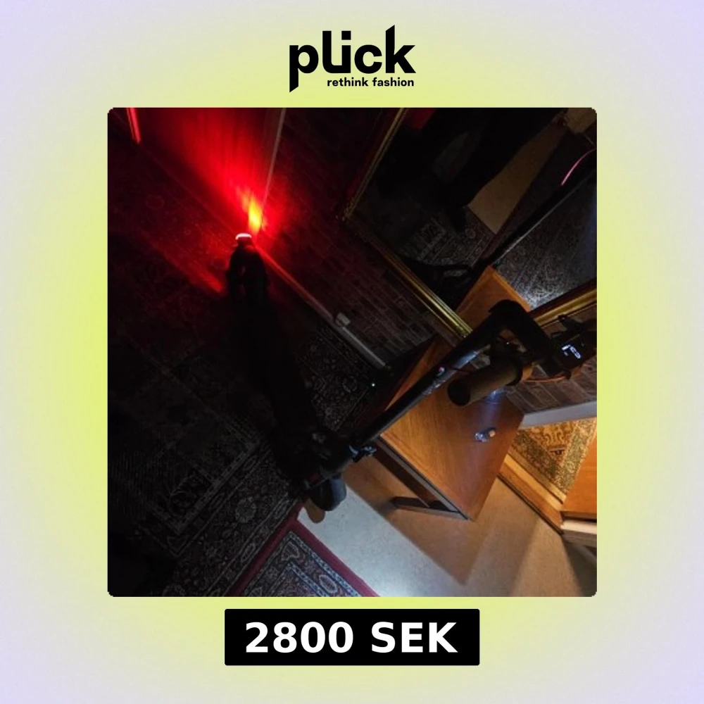 Snygg elscooter, fram- och bakljus för ökad säkerhet. Laddas enkelt via vägguttag. Styret har handbroms och ringklocka. Ser ut att vara i gott skick utan synliga skador eller större slitage. Perfekt för smidig och miljövänlig transport i stan.