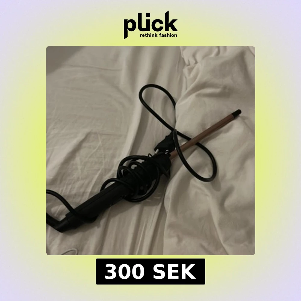 Praktisk locktång med konisk stav för snygga lockar. Utrustad med enkel on/off-knapp och lång sladd. Svart handtag och kopparfärgad stav. Gott skick utan synliga defekter eller slitage.