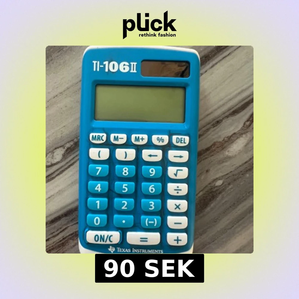 Praktisk TI-106 II kalkylator från Texas Instruments i blått. Enkel att använda med tydliga knappar och solcellsdisplay. Perfekt för skola eller hem. Mindre yttre slitage syns men fungerar utmärkt.