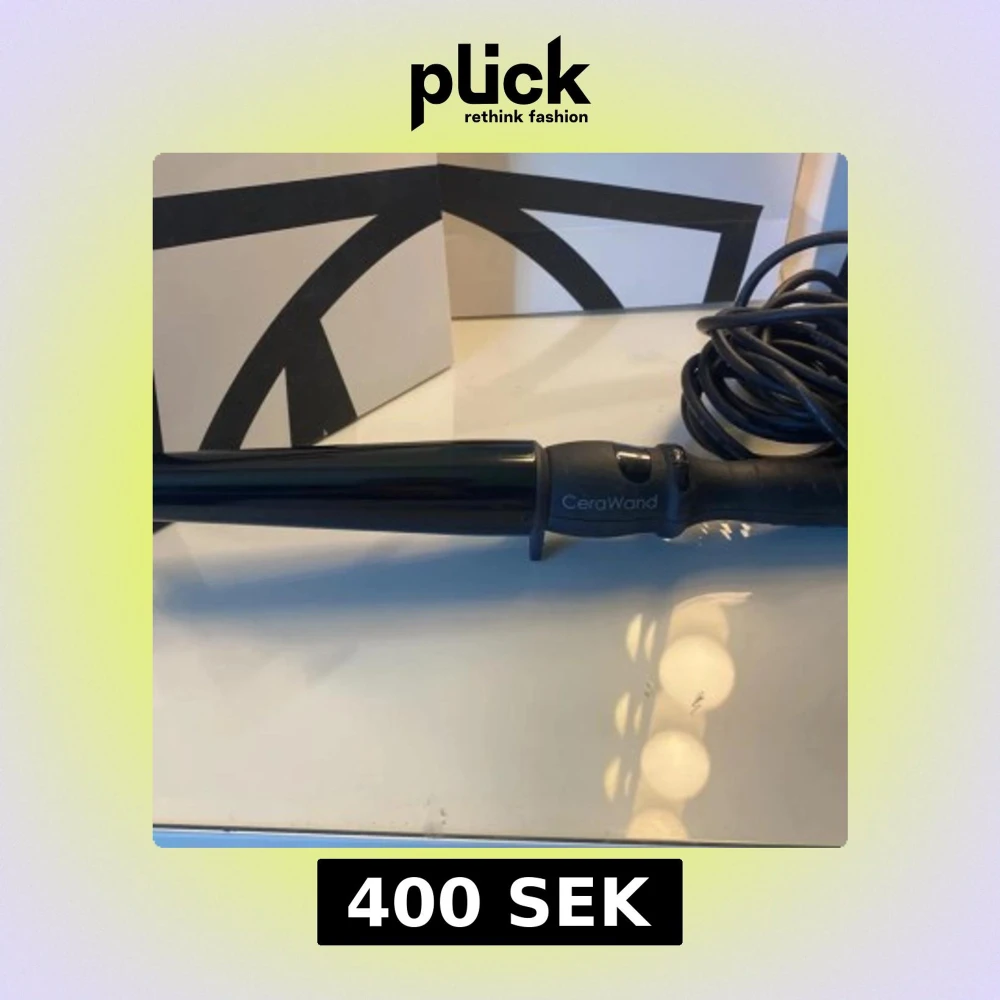 CeraWand locktång med keramisk beläggning för skonsam styling. Svart design, lång sladd och ergonomiskt handtag. Produkten ser ut att vara i gott skick med mindre ytliga repor på handtaget. Perfekt för att skapa vackra lockar snabbt och enkelt.