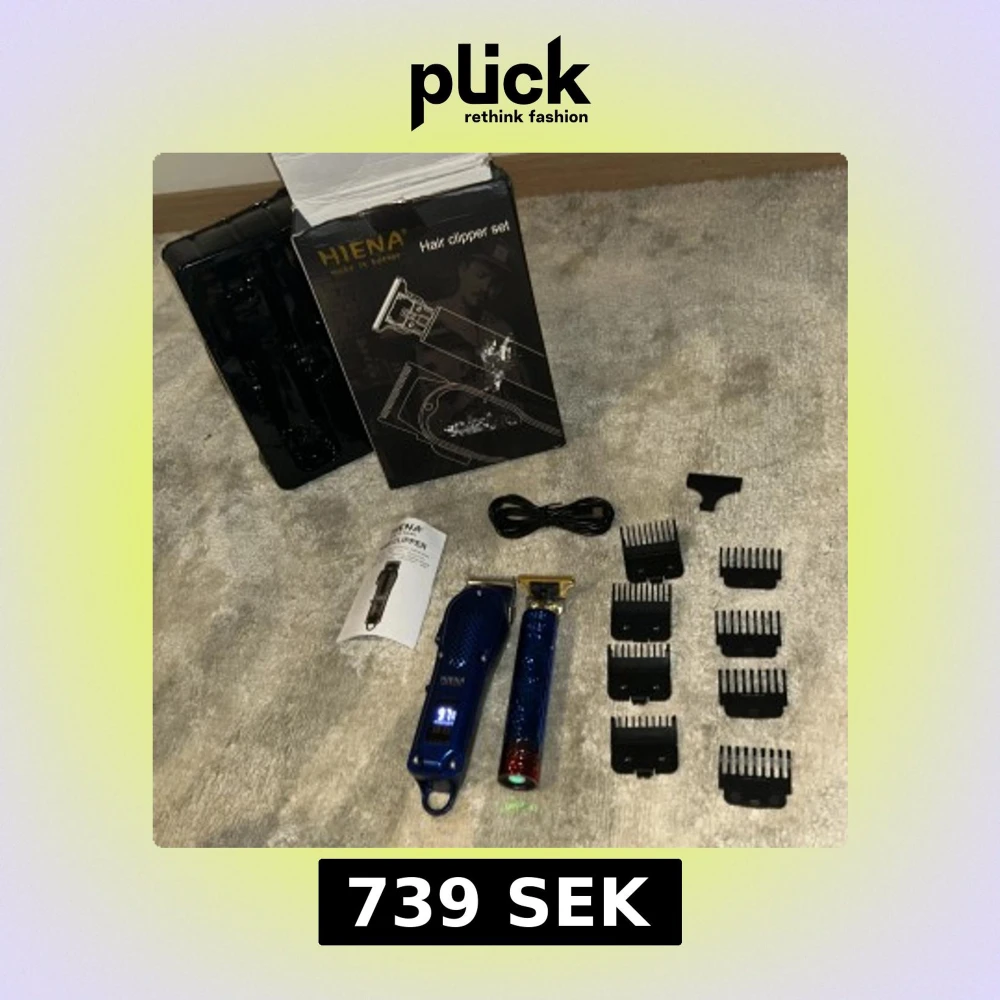 Komplett HIENA hårklippare och trimmer-set med digital display, flera kammar, USB-laddkabel och tillbehör. Passar för hår, skägg och kropp. Snygg design, ser ut att vara i mycket gott skick. Perfekt för både hemmabruk och professionell styling. Priset kan diskuteras:)