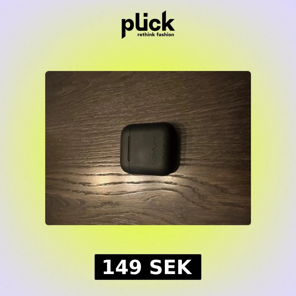Defunc TRUE GO SLIM trådlösa hörlurar med laddningsetui. Svart färg, kompakt design och bekväm passform. Hörlurarna och etuiet ser ut att vara i gott skick utan synligt slitage. Perfekt för musik och samtal på språng.