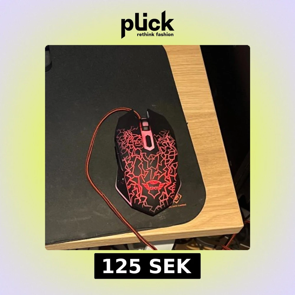 Snygg Trust GXT gamingmus med RGB-belysning och justerbar DPI. Ergonomisk design, flätad kabel och flera knappar för optimal spelupplevelse. Musen är i gott skick utan synligt slitage och fungerar utmärkt för både gaming och vardagsbruk.