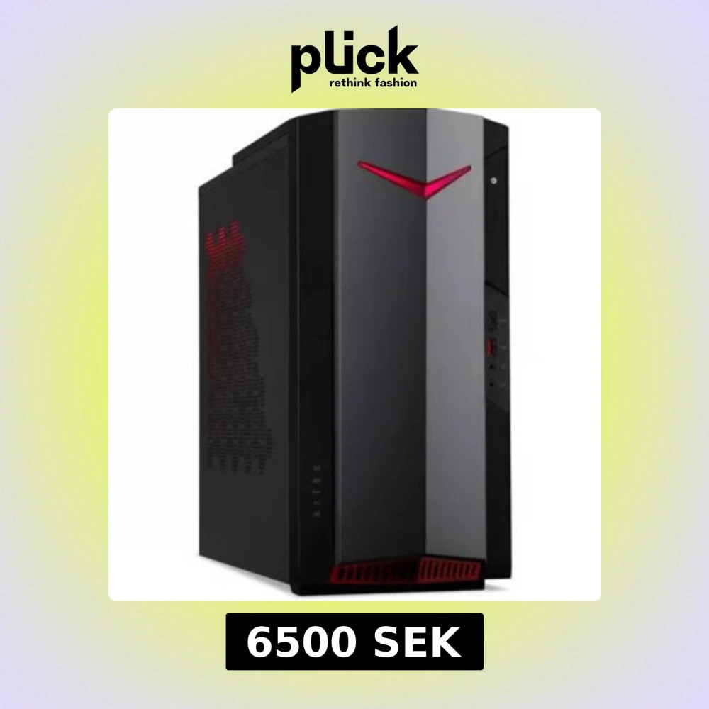 Acer Nitro 11400F stationär gamingdator med 16 GB RAM och 512 GB lagring. Snygg design med röd LED-belysning, perfekt för spel och krävande uppgifter. Mått: 17,5x38,6 cm, vikt 7,45 kg. Skick: ser ut som ny, inga synliga defekter eller slitage.