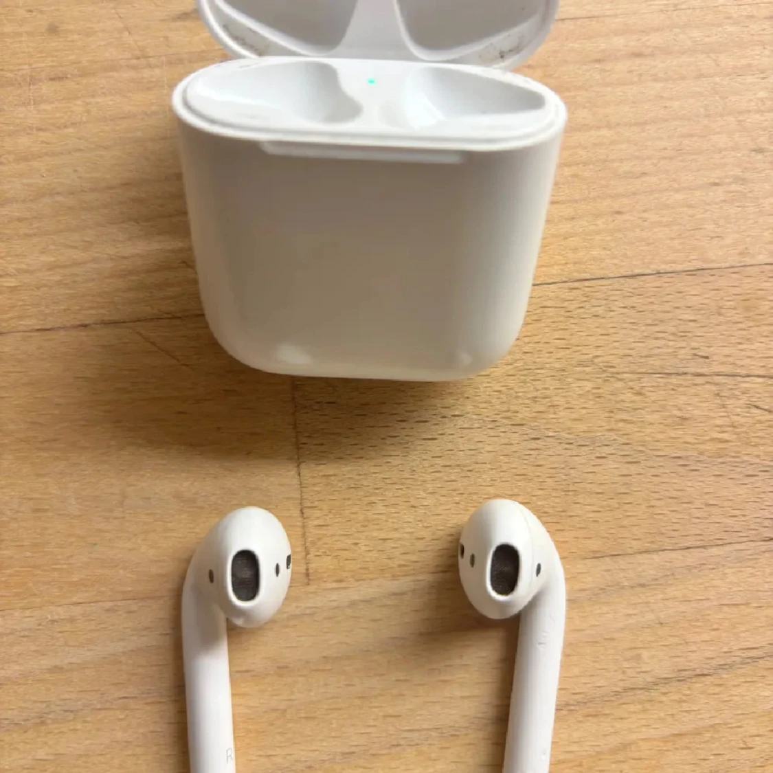 Säljer ett par Apple AirPods 2 med laddningsetui. Hörlurarna är trådlösa och fungerar utmärkt med både iPhone och andra enheter. Skicket är bra med mindre tecken på normalt bruk, inga synliga större repor eller skador. Perfekt för musik, samtal och träning.
