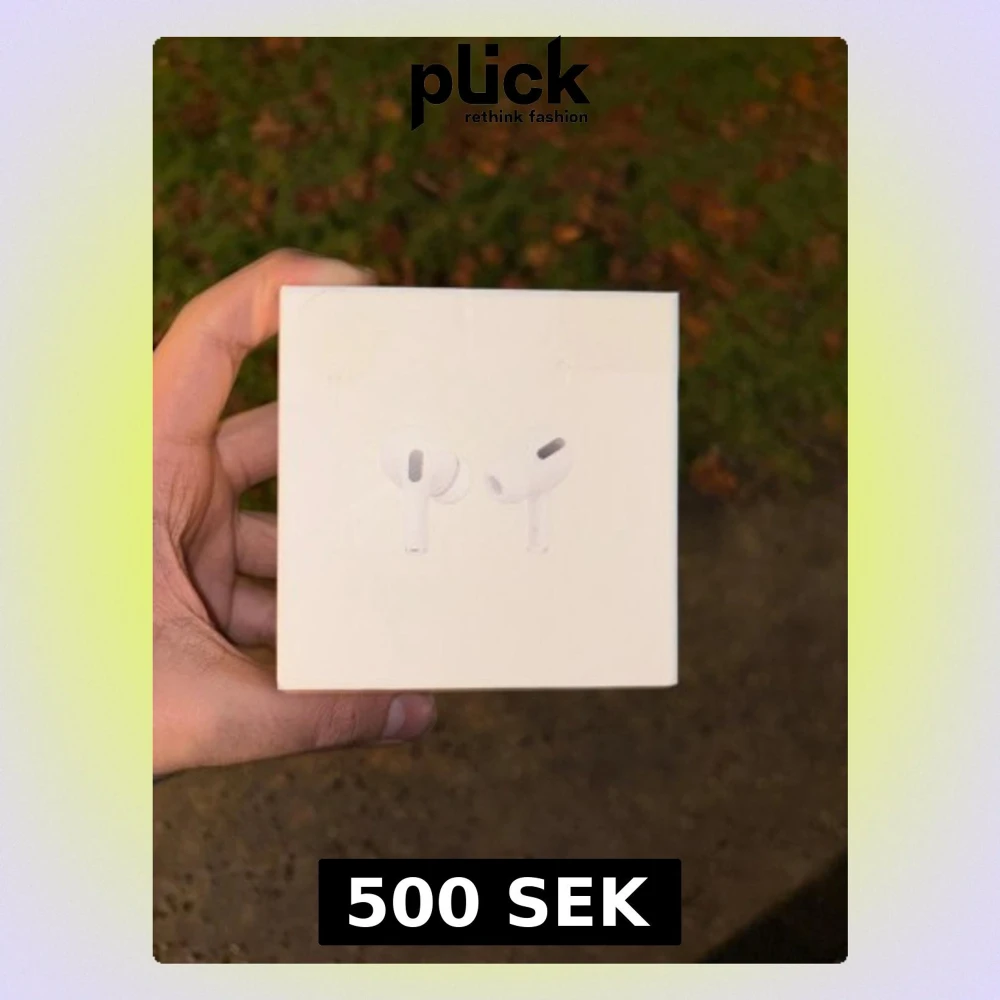 Säljer ett par AirPods Pro i originalförpackning. Trådlösa hörlurar med aktiv brusreducering och hög ljudkvalitet. Kartongen ser ut att vara i fint skick utan synligt slitage. Perfekt för musik, samtal och träning. Du får med dig laddare,lådan och skal till airpodsen