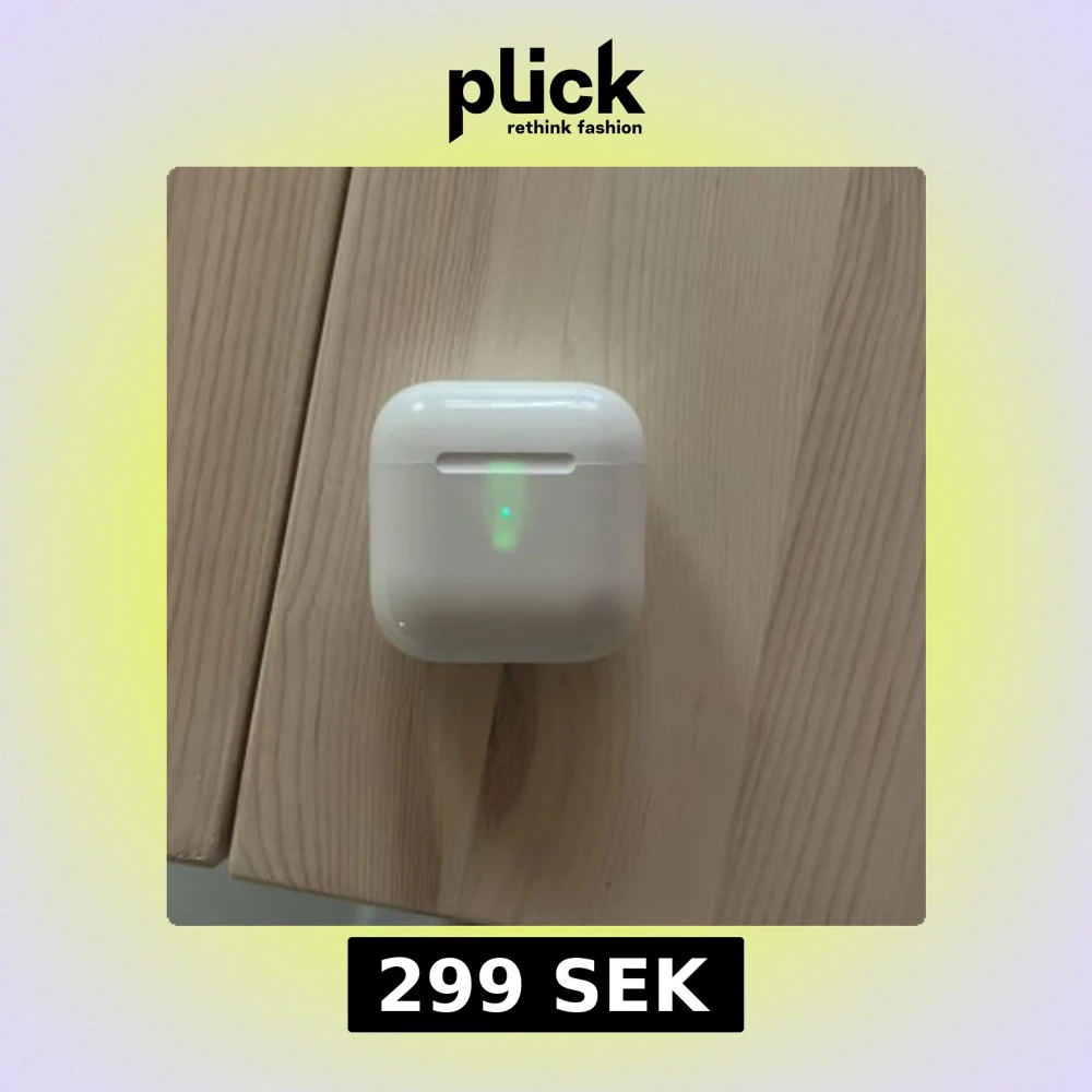 Snygga och välfungerande Apple AirPods (2nd gen) med laddningsetui och laddkabel. Laddningsindikatorn lyser grönt, vilket visar att de fungerar. Inga synliga repor eller skador, rent och fräscht skick. Perfekt för trådlös musik och samtal.