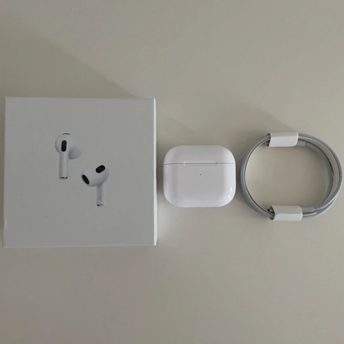 Säljer ett par Apple AirPods 3 i mycket fint skick. Komplett med originalkartong, laddningsetui och laddkabel. Inga synliga repor eller skador, ser ut som nya. Perfekt för trådlös musik och samtal med hög ljudkvalitet. Levereras i originalförpackning. Laddaren är använd och öppnat