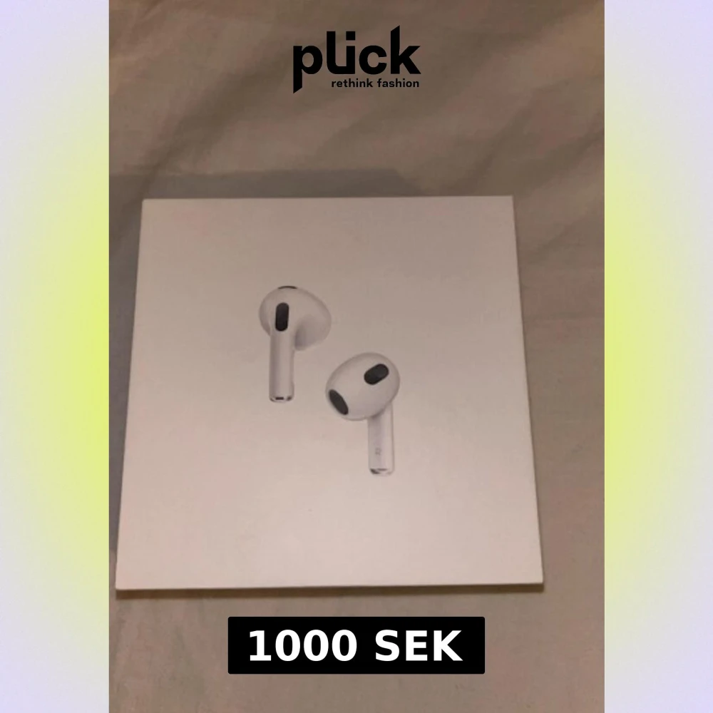 Apple AirPods (3rd generation) med Lightning-laddningsetui. Komplett i originalförpackning med laddkabel och dokumentation. Produkten ser ut att vara i mycket gott skick, utan synliga defekter eller slitage. Perfekt för trådlös musik och samtal med hög ljudkvalitet. Pris kan diskuteras!