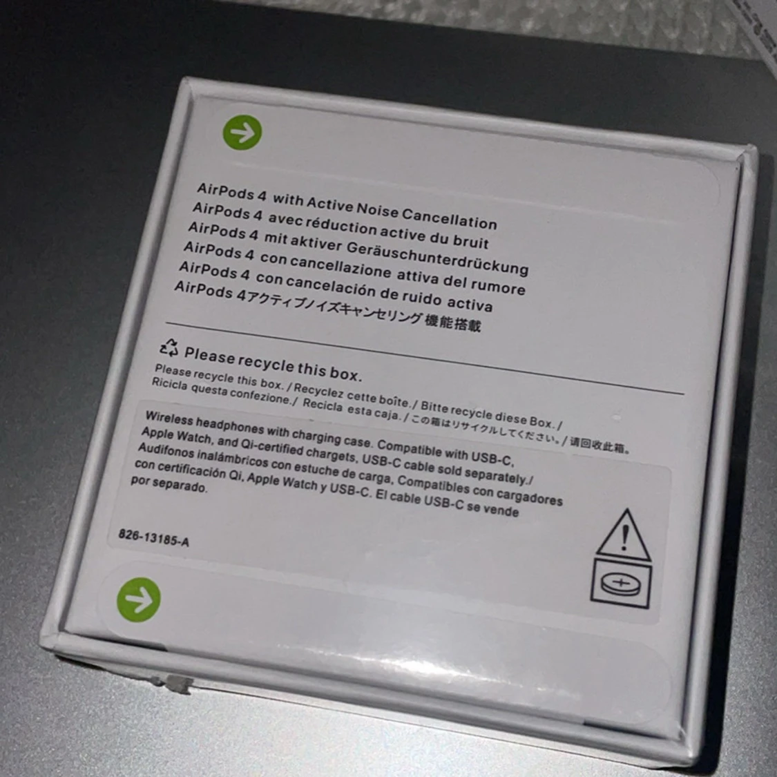 Nya Apple AirPods 4 med aktiv brusreducering och laddningsetui. Kompatibla med USB-C, Apple Watch och Qi-certifierade laddare. Förseglad originalförpackning, inga synliga skador eller slitage. Perfekt för trådlös musik och samtal med hög ljudkvalitet.
