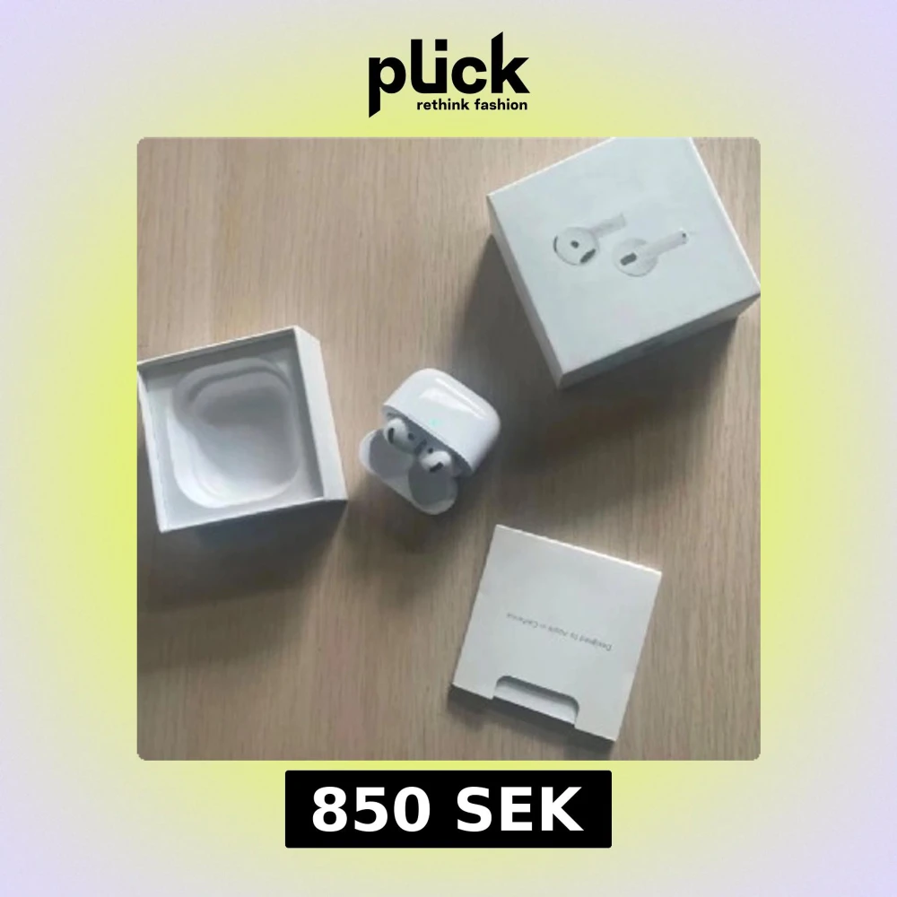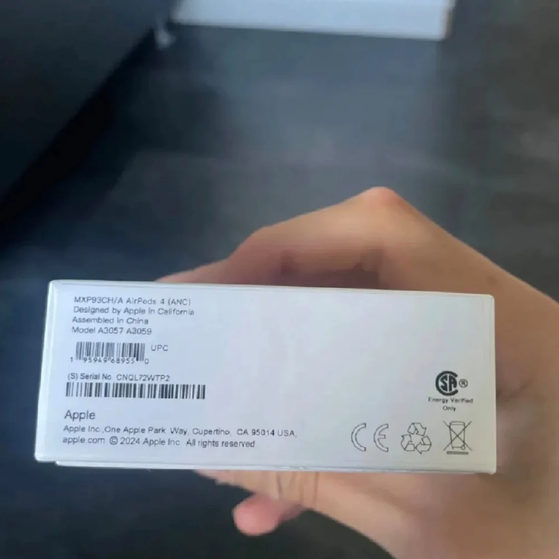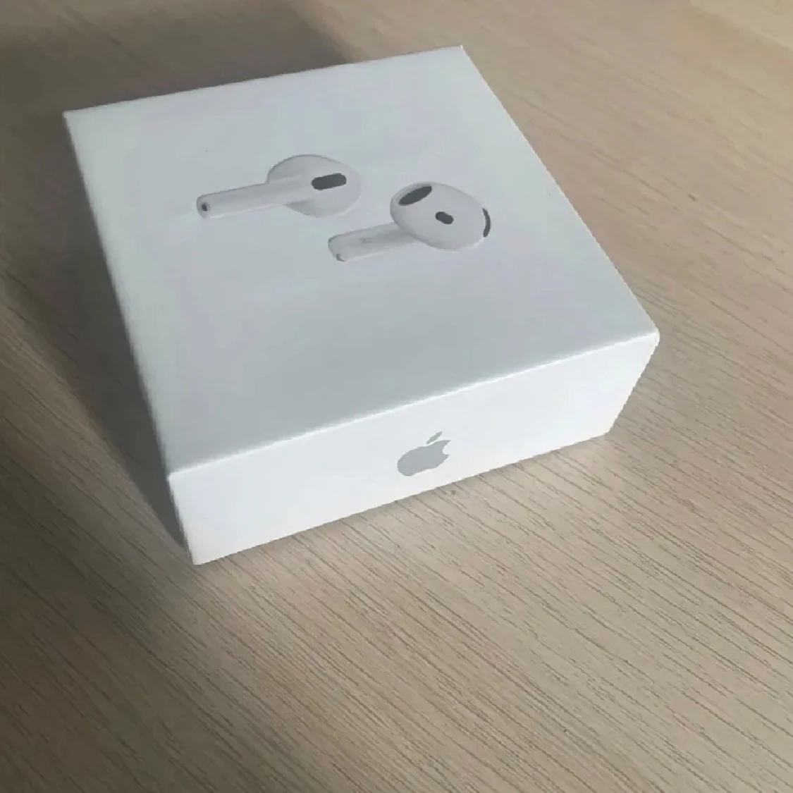 Apple AirPods 4 med aktiv brusreducering (ANC), modell A3057/A3059. Komplett med originalförpackning och manualer. Hörlurarna och laddningsfodralet ser ut att vara i mycket gott skick, utan synligt slitage. Perfekt för trådlös musik och samtal.