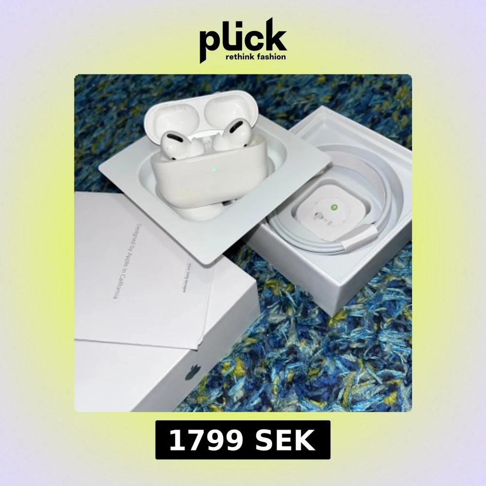 Säljer ett par Apple AirPods Pro i originalförpackning med laddningskabel och manual. Hörlurarna och laddningsetuiet ser ut att vara i gott skick utan synliga repor eller skador. Perfekt för trådlös musik och samtal med aktiv brusreducering och hög ljudkvalitet.