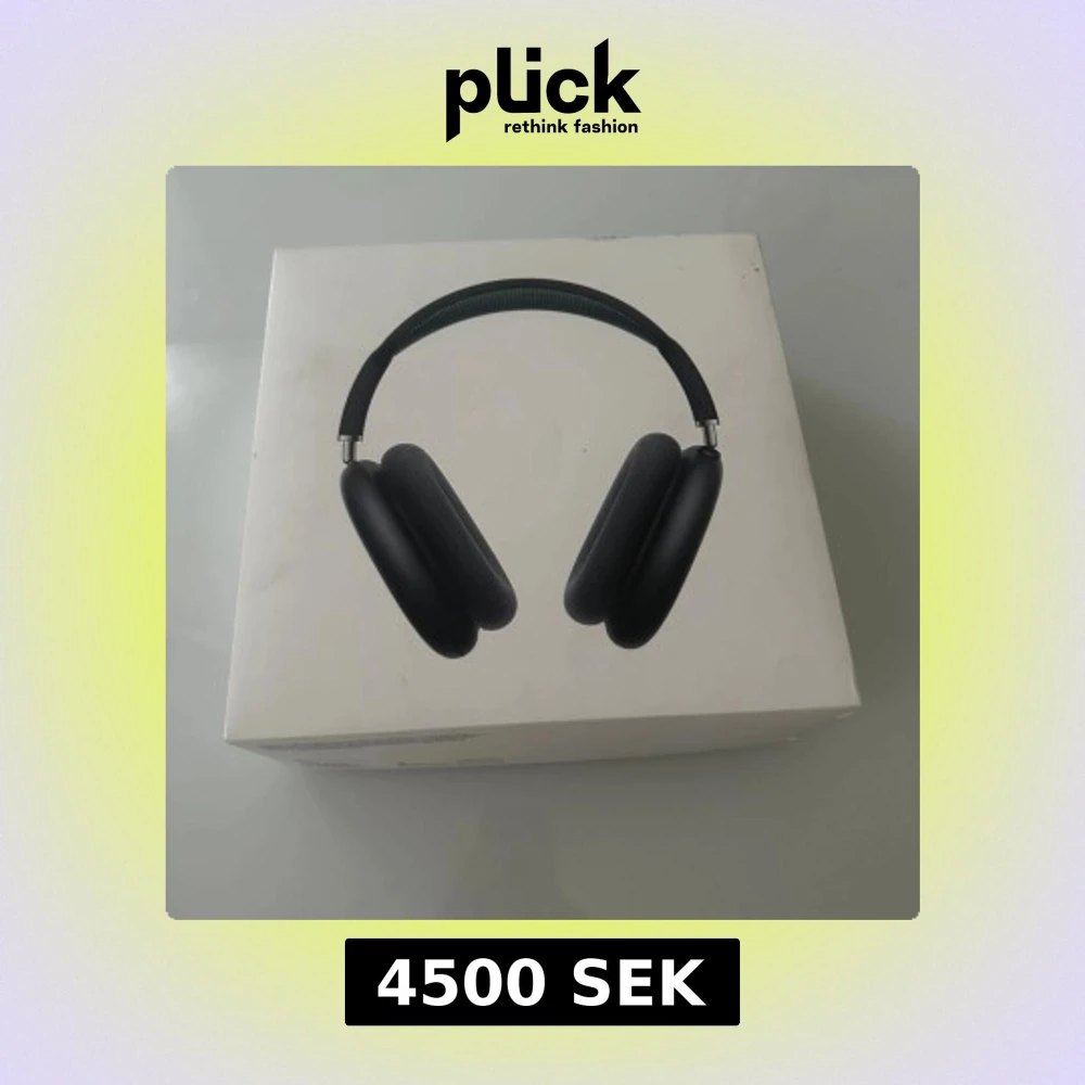 Apple AirPods Max i svart färg, levereras med originalförpackning och Smart Case. Hörlurarna ser ut att vara i mycket gott skick utan synliga repor eller skador. Upplev aktiv brusreducering, hög ljudkvalitet och trådlös frihet med dessa premium over-ear hörlurar.