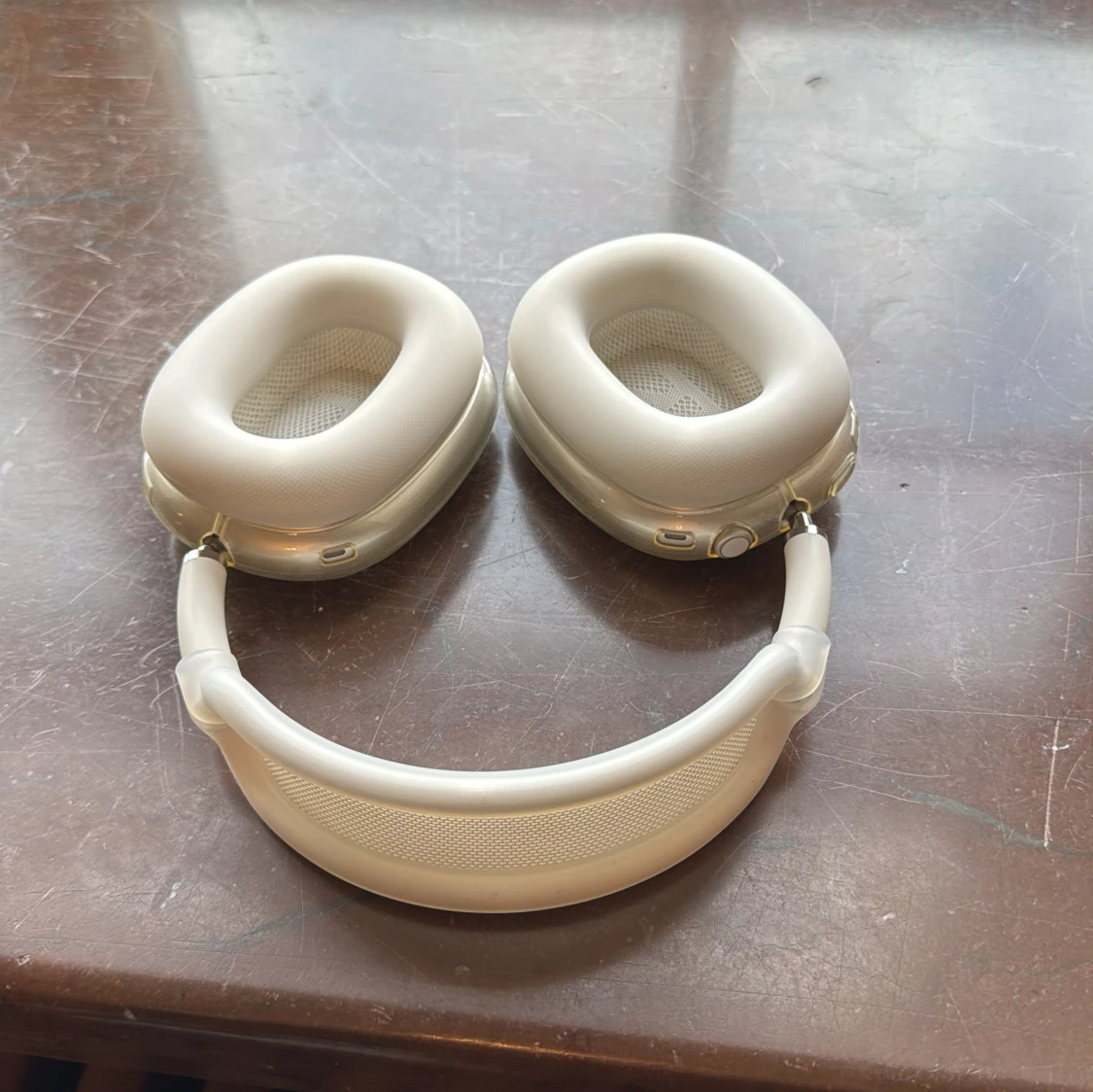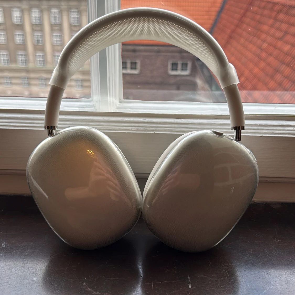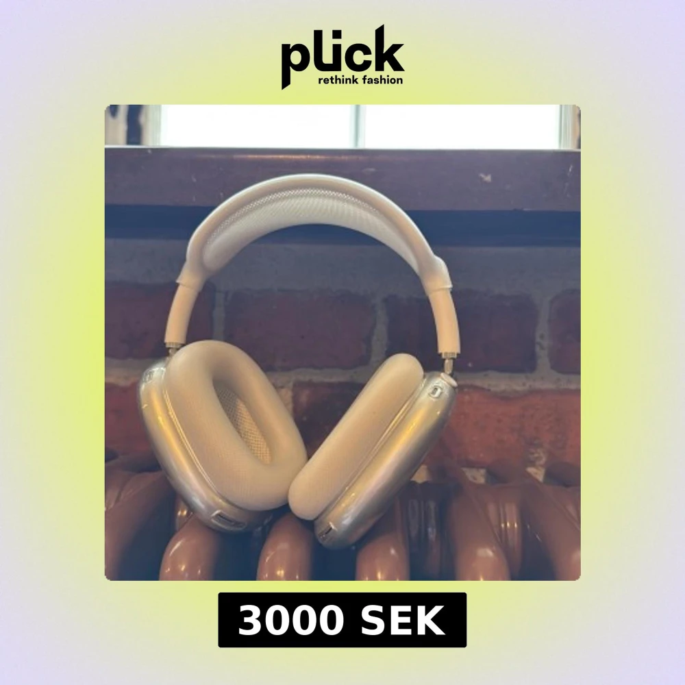 Apple AirPods Max i silver, trådlösa over-ear hörlurar med aktiv brusreducering och hög ljudkvalitet. Skicket är mycket bra med minimalt slitage, inga synliga repor eller defekter. Perfekt för musik, film och samtal med lång batteritid och bekväm passform.