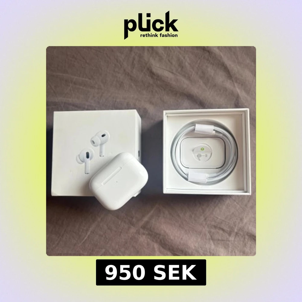 AirPods Pro 2 komplett med originalförpackning, laddningskabel och laddningsetui. Hörlurarna är sprillans och aldrig använda. Obs kvitto saknas då det var en gåva, tveka inte att höra av er vid minsta fråga. Mvh Matteus