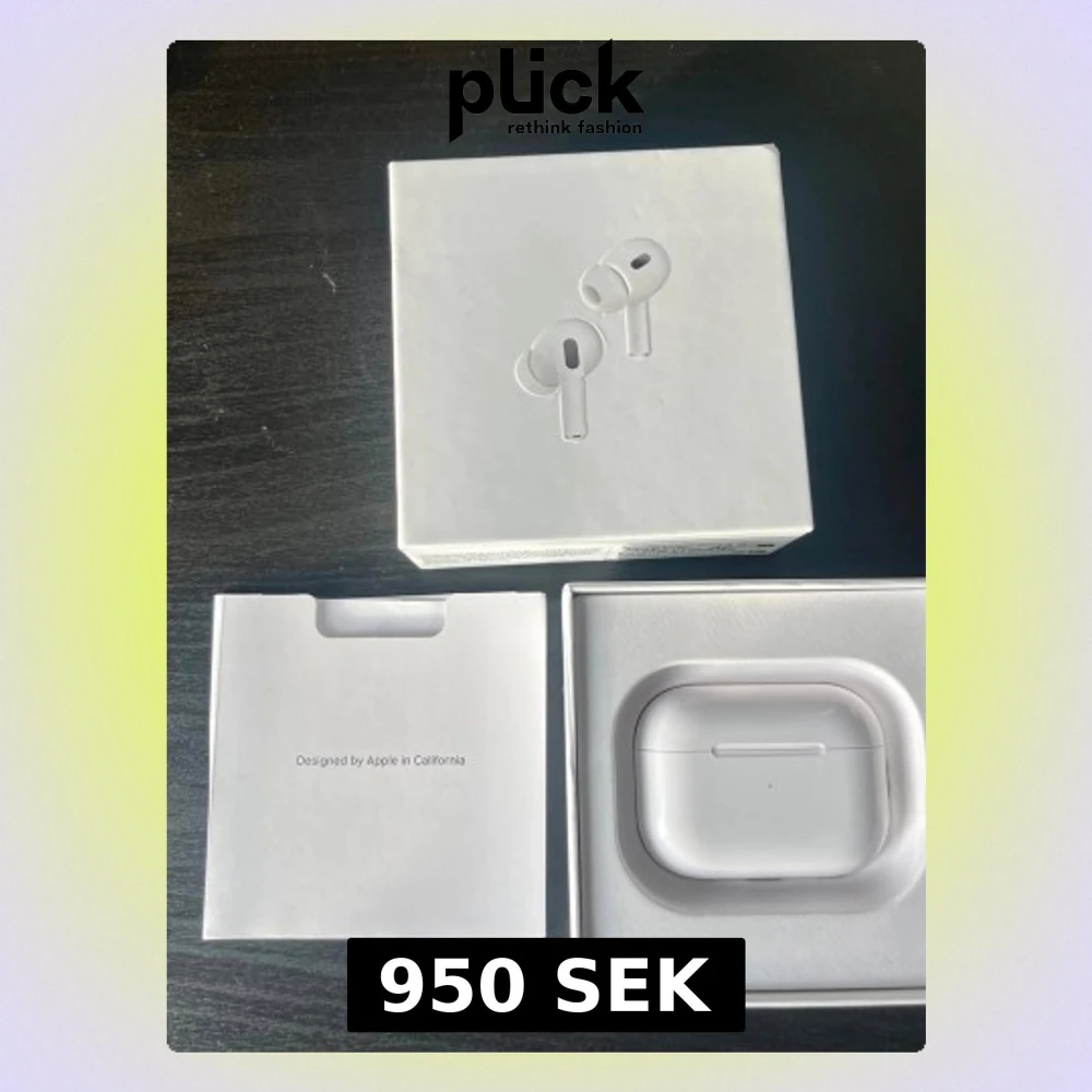 Säljer ett par AirPods Pro 2 från Apple, komplett med originalförpackning och laddningsetui. Aktiv brusreducering, transparensläge och MagSafe-kompatibilitet. Perfekt för både musik och samtal.