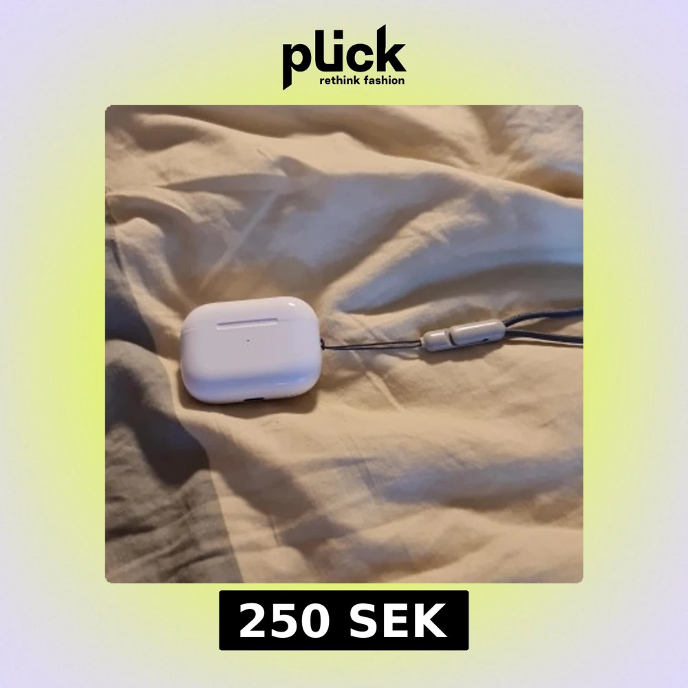 Säljer ett par AirPods Pro (2nd gen) med USB-C-laddningsetui. Hörlurarna är i fint skick och levereras med handledsrem. Aktiv brusreducering och transparensläge. Inga synliga repor eller skador. Dem ljusen som skiner när du öppnar skalet kan du trycka på bak knappen sen försvinner dem i samma sekund den tråden som syns på bilden kommer med men inte laddare ANC funkar !