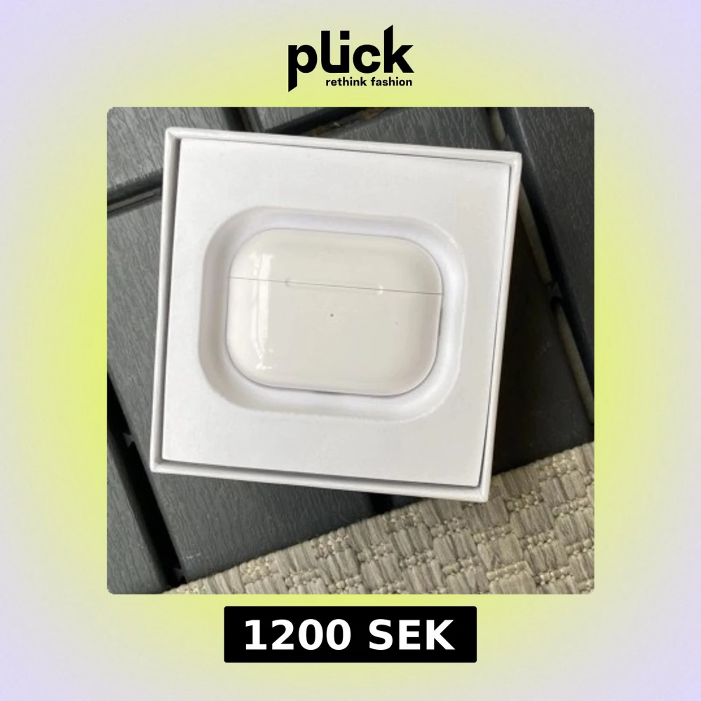 Apple AirPods Pro i originalförpackning. Trådlösa hörlurar med aktiv brusreducering och laddningsetui. Produkten ser ut att vara i gott skick med endast mindre tecken på användning. Perfekt för musik, samtal och träning.