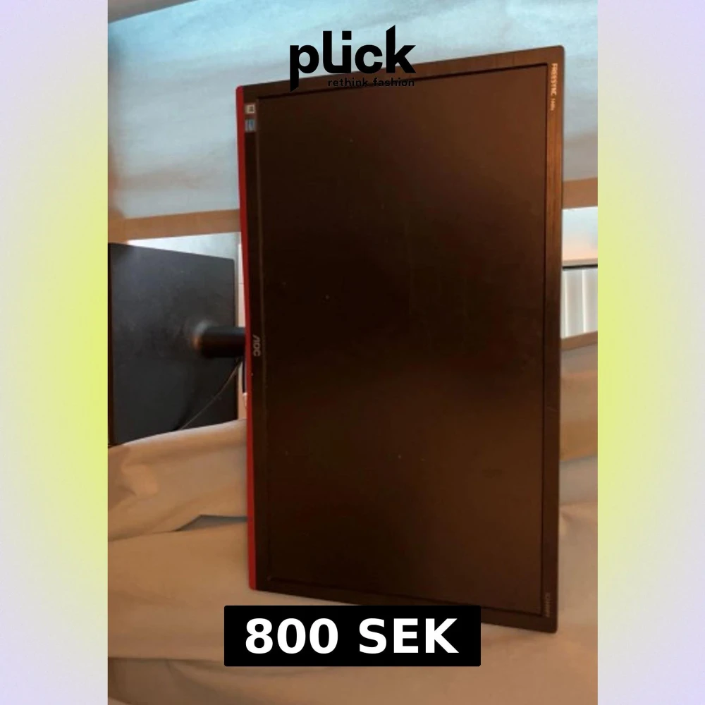 AOC gaming monitor med Freesync och 144Hz uppdateringsfrekvens för en smidig spelupplevelse. Utrustad med USB-portar och röd design. Skärmen ser ut att vara i gott skick utan synliga repor eller skador. Perfekt för gaming och multimedia. Den har blivit lite sliten där bak men skärmen e i bra skick köpte den från en kille på plick i januari och har spelat me den skärmen från januari tills oktober då jag bestämde mig för köpa en ny skärm som var bättre