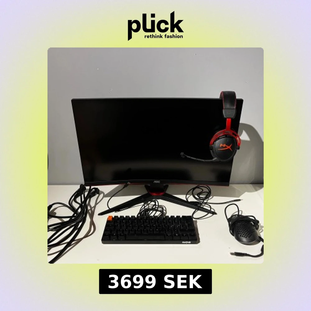 Komplett gamingpaket med AOC 240Hz gaming-skärm, HyperX gamingstol, HyperX headset, mekaniskt tangentbord och gamingmus. Allt i mycket gott skick, perfekt för gaming. Inga synliga defekter eller större slitage.
