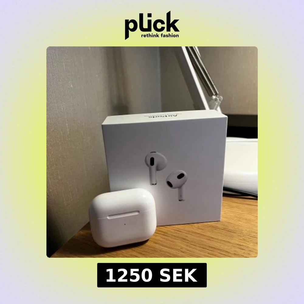 Apple AirPods (3rd generation) med originalförpackning. Trådlösa hörlurar med MagSafe-laddningsetui. Hörlurarna och etuiet är i gott skick, men viss smuts och slitage syns invändigt i etuiet. Perfekt för musik, samtal och träning. Köpt 2023 och är i perfekt skick. Säljer dom för jag har köpt nya generationen.