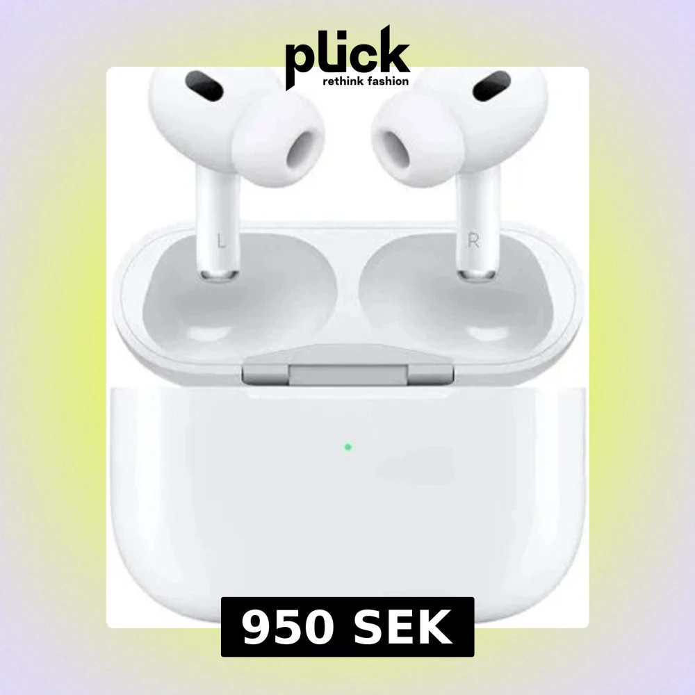 Apple AirPods Pro 2 - Säljer ett par vita Apple AirPods Pro med laddningsetui och originalförpackning. Hörlurarna har en stilren och kompakt design i blank plast och levereras med laddningskabel. Perfekta för dig som vill ha grymt ljud och smidig anslutning till din iPhone.
