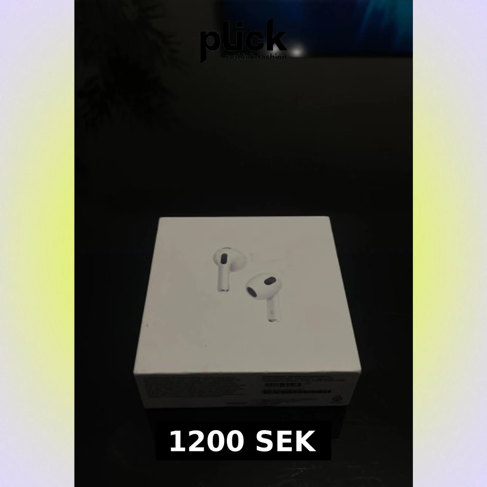 Säljer ett par AirPods 3rd generation med originalförpackning och laddningsetui. Hörlurarna är i mycket gott skick, utan synliga repor eller skador. Perfekt för trådlös musik och samtal med hög ljudkvalitet. Kompatibel med MagSafe och Qi-laddare. Levereras komplett med tillbehör.