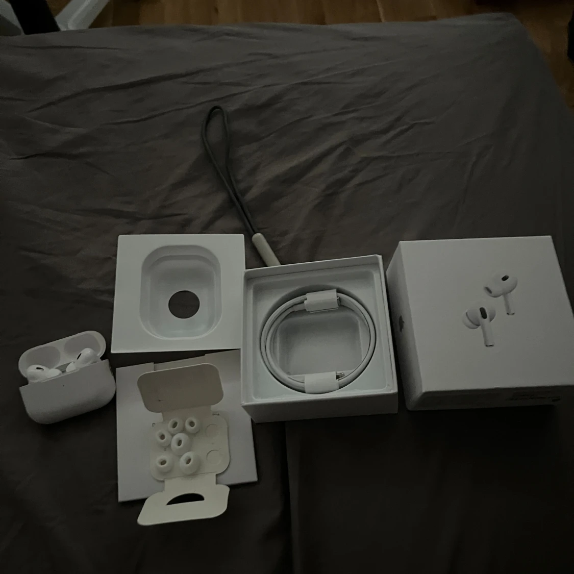 Säljer ett par Apple AirPod Pro 2nd Generation med MagSafe-laddningsetui. Komplett med originalförpackning, extra öronproppar och laddkabel. Allt i mycket fint skick, inga synliga repor eller skador. Perfekt för trådlös musik och samtal.