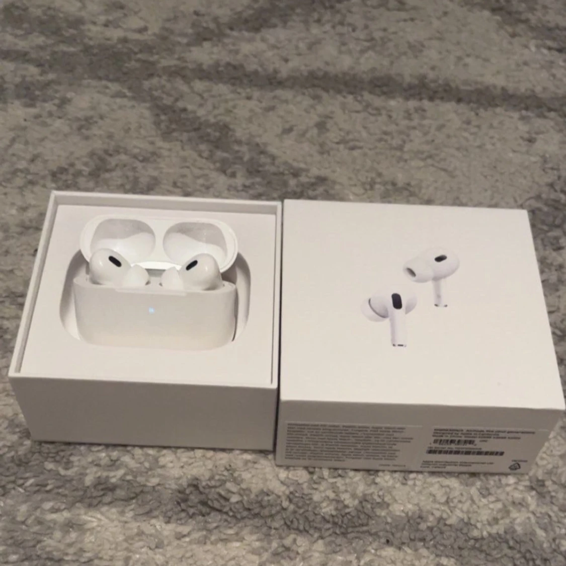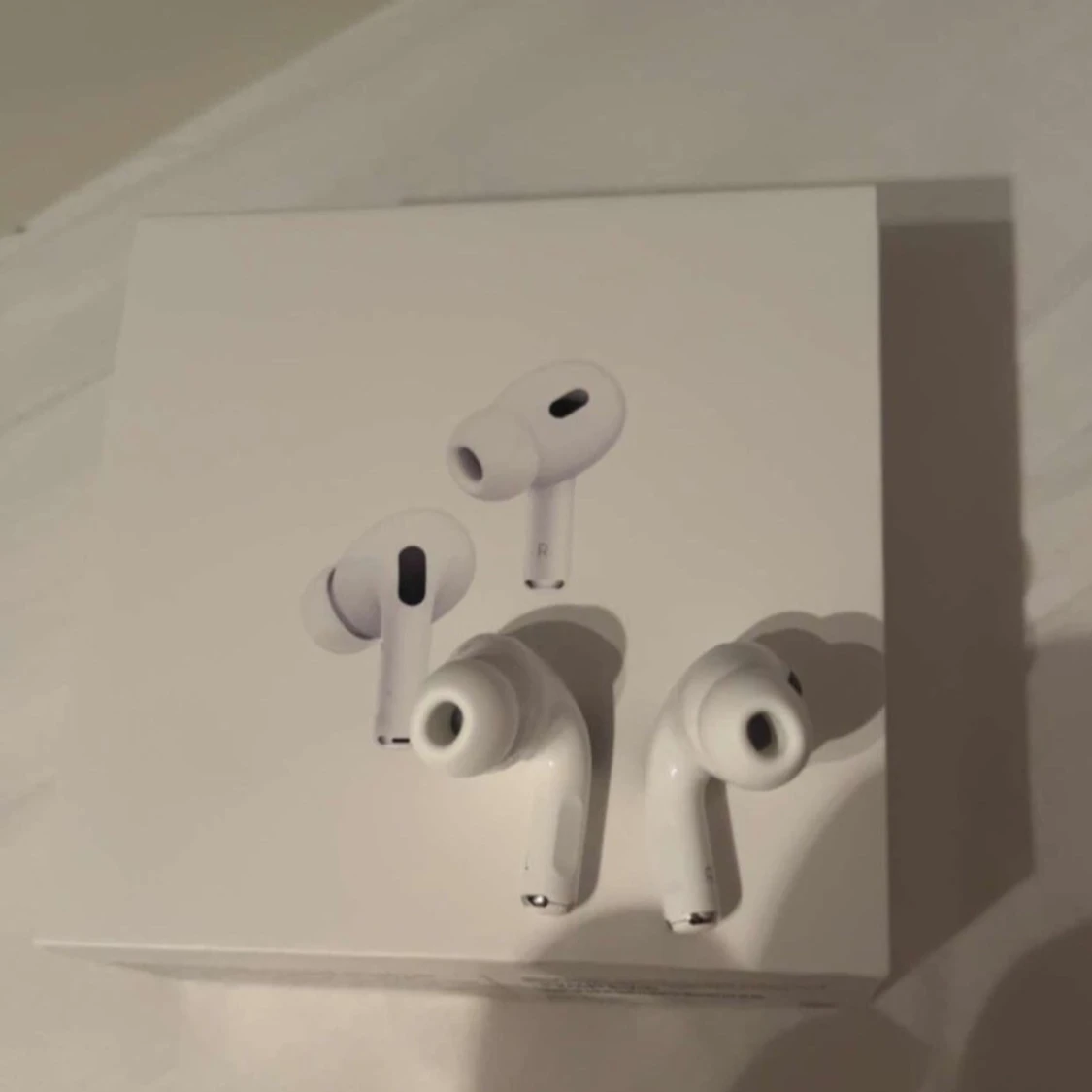 Snygga och välbevarade AirPods Pro 2 med originalförpackning. Aktiv brusreducering, trådlös laddning och förbättrad passform. Inga synliga defekter eller slitage, ser ut som nya. Perfekt för musik, samtal och träning. Levereras komplett med laddningsetui.