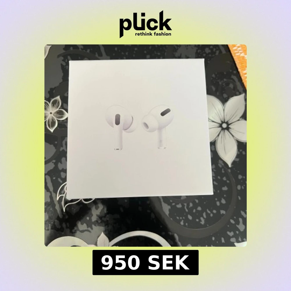 Apple AirPods Pro i originalförpackning med laddningsetui, extra öronproppar, laddkabel och manualer. Allt ser komplett och i mycket fint skick ut, perfekt för dig som vill ha trådlösa hörlurar med aktiv brusreducering och hög ljudkvalitet. Helt nya.