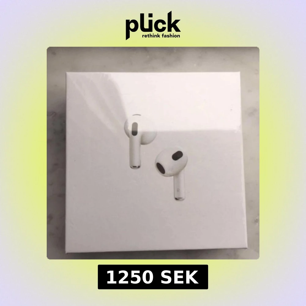 Helt nya Apple AirPods 3 med MagSafe-laddningsetui. Oöppnad originalförpackning. Trådlösa hörlurar med förbättrad batteritid, adaptiv EQ och rumsligt ljud. Perfekt för musik, samtal och träning. Ingen synlig skada eller slitage på kartongen.