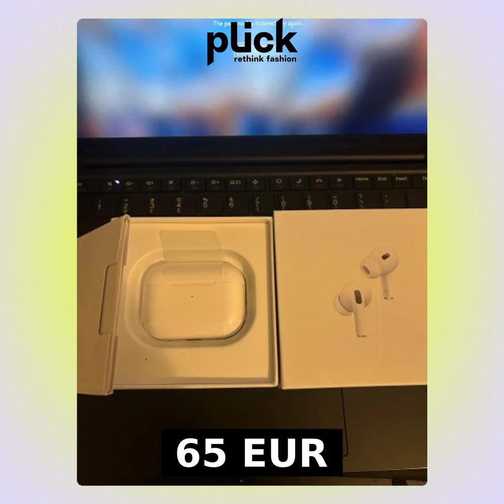 Säljer ett par Apple AirPods Pro i originalförpackning med laddningskabel och etui. Hörlurarna ser ut att vara i mycket gott skick, utan synligt slitage. Perfekt för trådlös musik och samtal med aktiv brusreducering och hög ljudkvalitet.