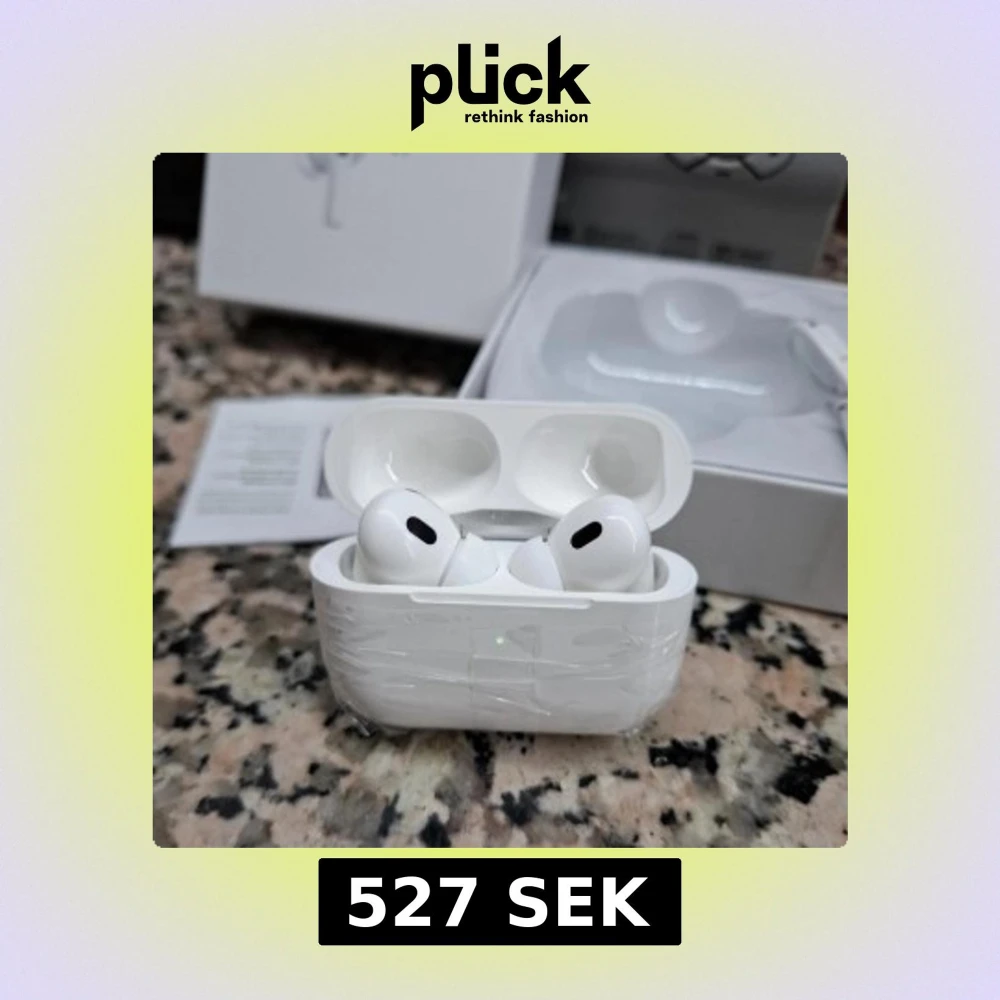 Snygga AirPods Pro med laddningsetui, USB-kabel och originalförpackning. Hörlurarna är i gott skick, med skyddsplast kvar på etuiet. Aktiv brusreducering och trådlös anslutning för bästa ljudupplevelse. Perfekt för musik, samtal och träning.