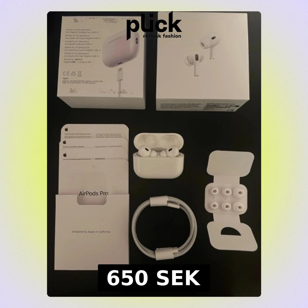 Jag säljer nu mina AirPods Pro 2 som jag knappt har använt. Den har brusducering. Ljudkvaliteten är mycket bra. Allt funkar som den ska som andra vanliga Airpods. Serienummer ser du på bilderna. Jag säljer den för ett billigt pris så att du kan spara flera tusen lappar☺️, extra silikonpluggar och laddningskabel. Snygg och kompakt design med in-ear passform och brusreducering. Perfekt för musik, poddar och samtal. Allt originaltillbehör och förpackning medföljer.