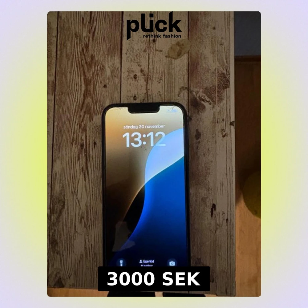 Snygg svart iPhone 13 med dubbla kameror. Skärmen har en spricka på skärmskyddet men fungerar som den ska. Baksidan är i gott skick. Perfekt för dig som vill ha en modern iPhone till ett bra pris.Ett problem har den Det är problem med ladd uttaget annars funkar den bra