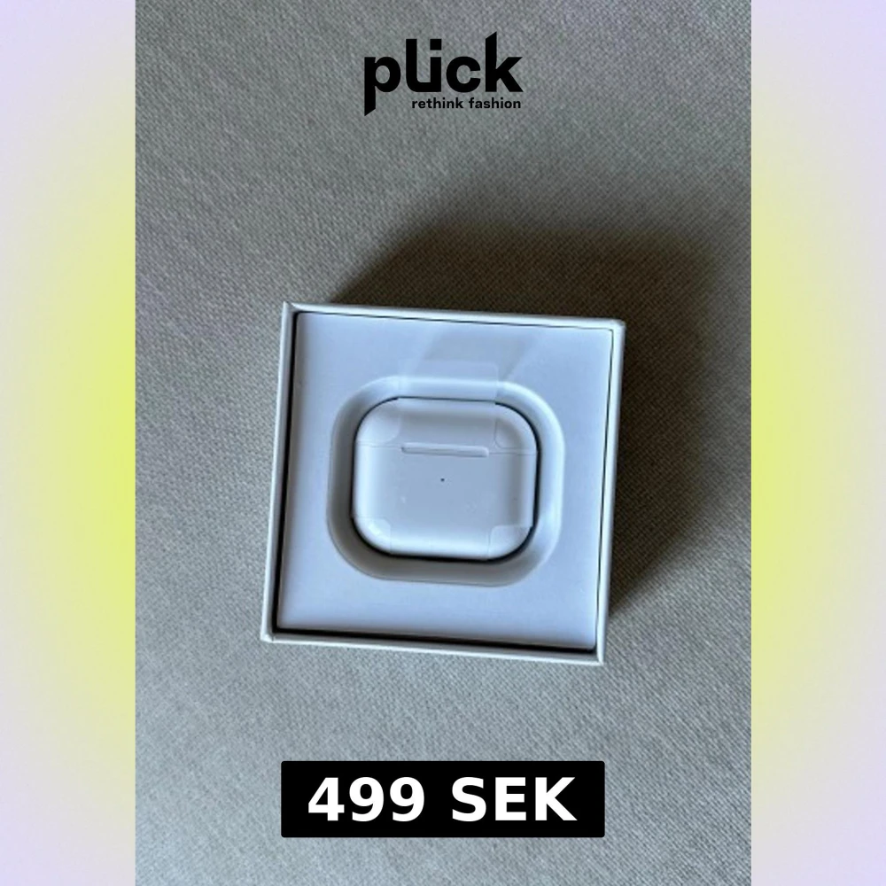 Säljer ett par Apple AirPods 3 i mycket fint skick, komplett med originalförpackning, laddningskabel och manualer. Hörlurarna och laddningsetuiet ser ut att vara sparsamt använda och utan synligt slitage. Perfekt för trådlös musik och samtal med hög ljudkvalitet.